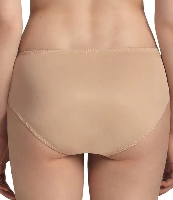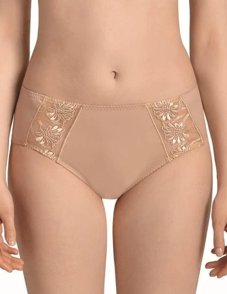 Flattering high waisted Safina Brief in soft glossy fabric with eye catching floral lace insert.