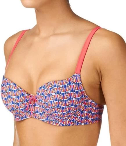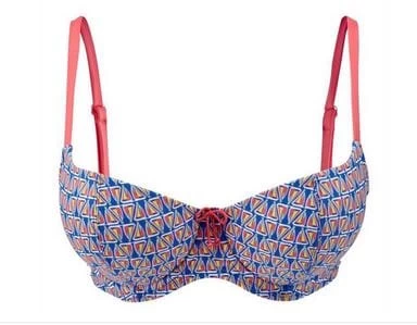 Lightly moulded cups give a great shape to the Pippa Balconette Bikini Top with adjustable straps and matching briefs with pretty multi coloured tiny boat print.
