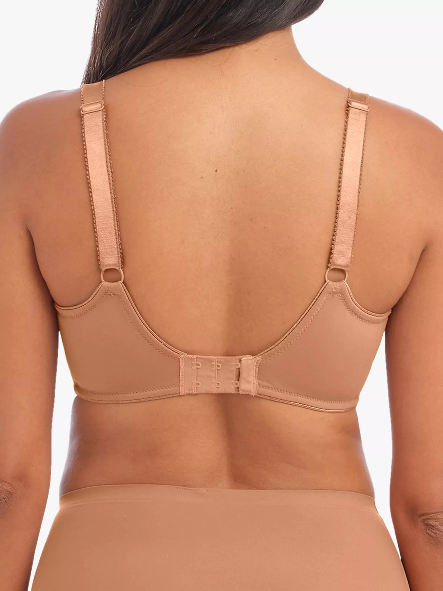The Fantasie Fusion Support Bra in a darker skin tone is offered in a full cup frame that gives forward projection with its clever side support. The top has elasticated neck edging which ensures an extra comfortable and perfect fit for all shapes. The soft handle lightweight jacquard fabric shapes perfectly to your body and makes this bra a firm favourite to wear under fitted tops without showing any lines. Its neutral skin colour also means it doesnt show up under white tops & blouses – which is great!
