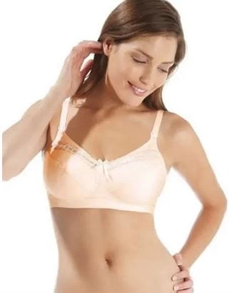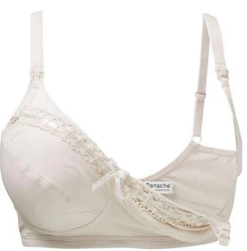 Soft and comfortable wire-free nursing bra with natural cotton fibre mixed with elastane. Easy drop cup allowing quick nursing with a side sling for support made from a high cotton content.