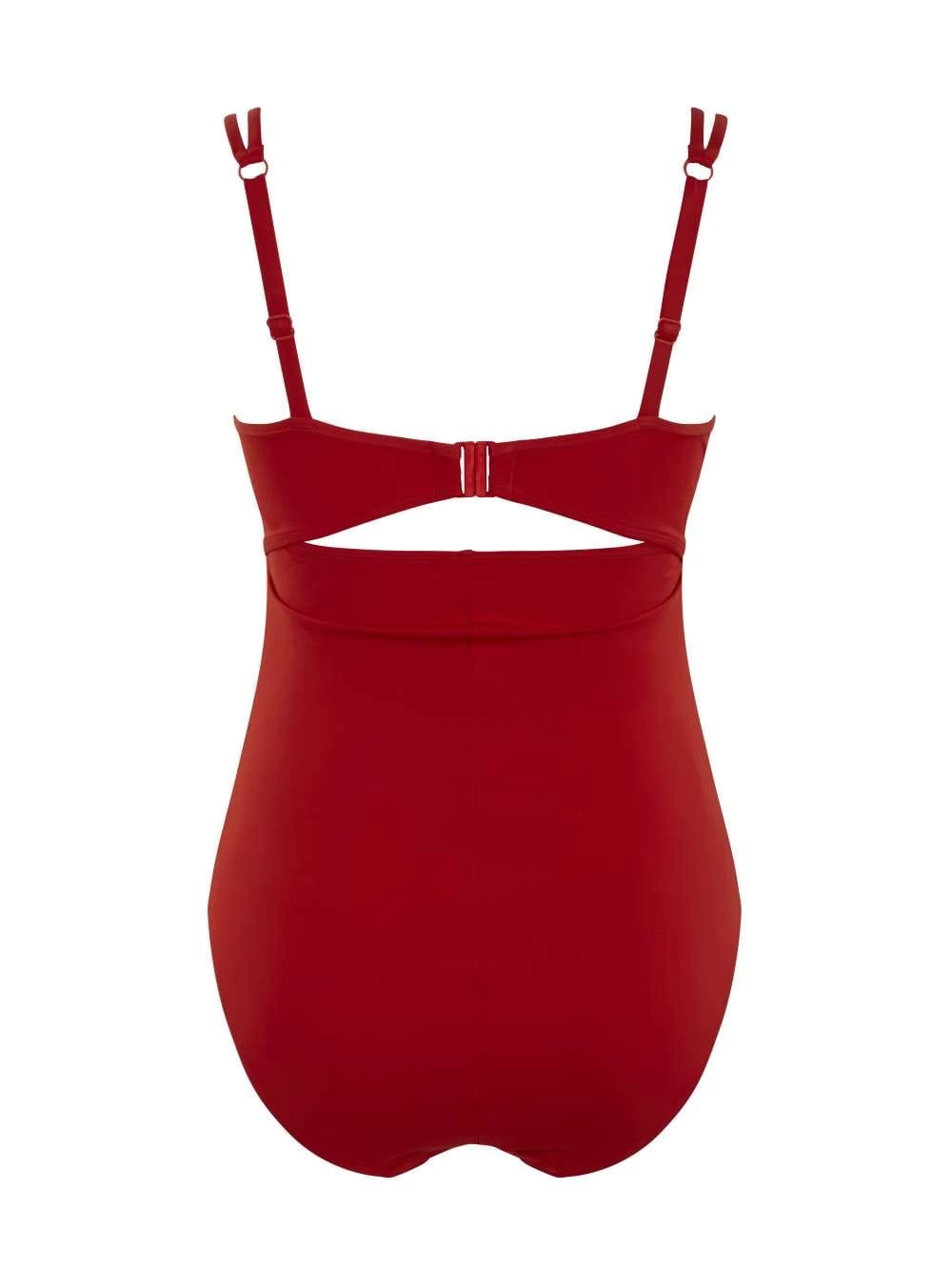 The Panache new Anya Riva Underwired Swimsuit in a bold fiery shade of red offers a very flattering shape with its built-in ‘power-mesh’ tummy liner giving fabulous tummy control & extra confidence. Designed with cleverly concealed underwires, in cups bra sizes from D-k cup you can be sure to get the support you need. New finishing touches include centre front gathering detailing, split straps and cut-out back offering extra support.