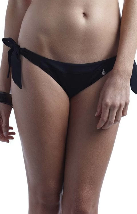 New style sexy black Anna tie side bikini pants very low cut with totally adjustable side fastenings from Panache swimwear.