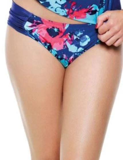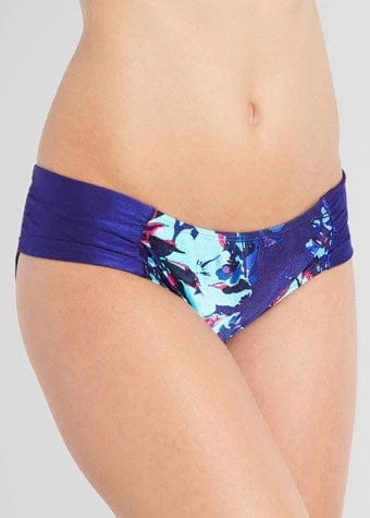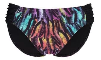 Panache Tallulah gathered bikini pant in multi-coloured feather design – softly ruched over your hipline for extra comfort.