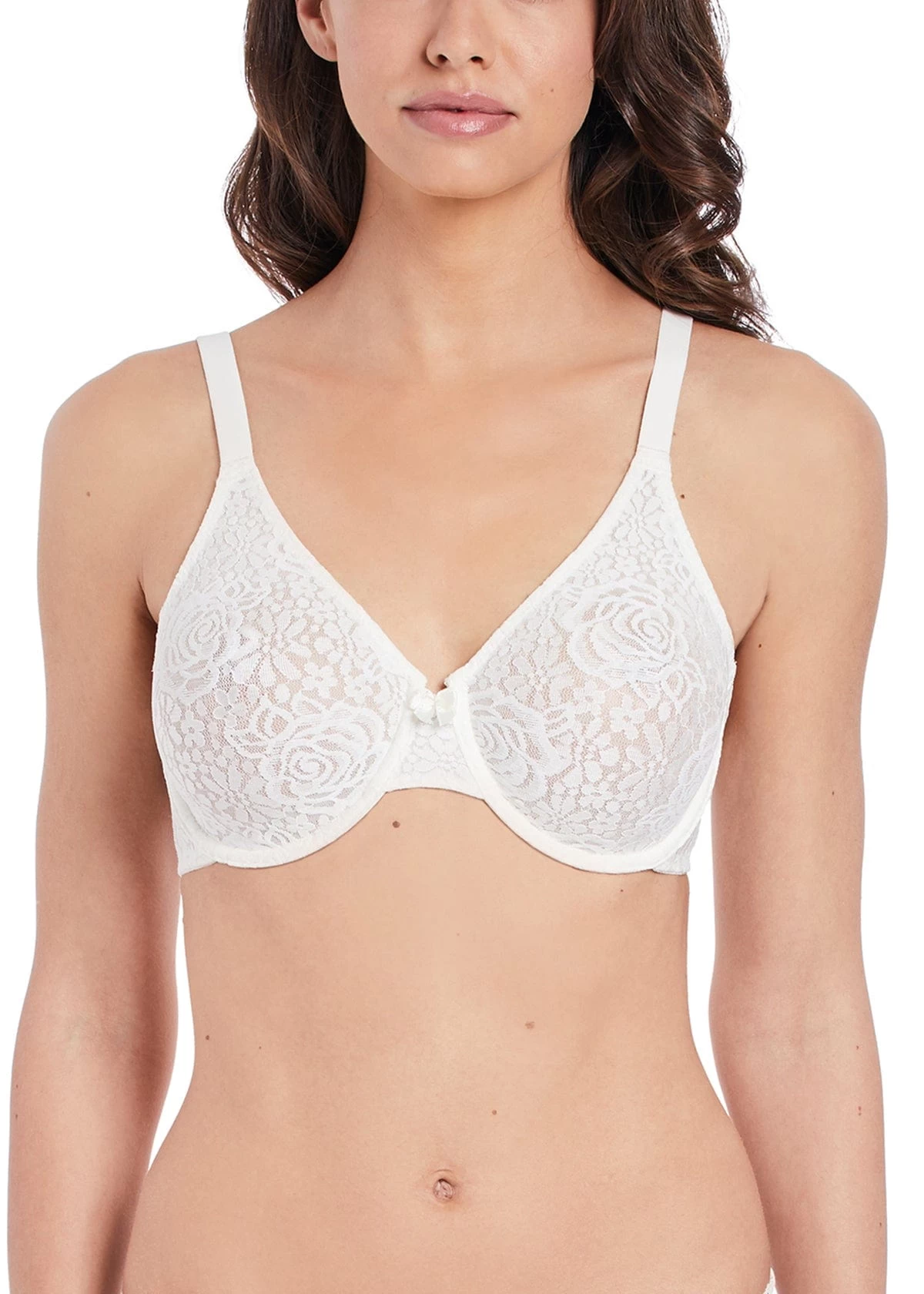 The Wacoal Halo Lace Moulded Bra is a true lingerie drawer essential. The Halo Lace Underwire Bra provides a smooth, natural shape and sublime support. The bra is crafted from brushed back all-over lace, complete with stretch back straps featuring an adjustable hook to create a racer back effect